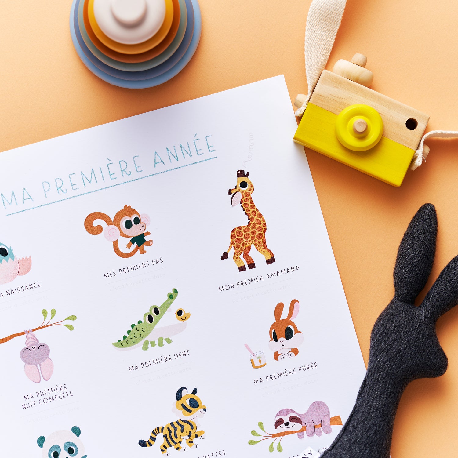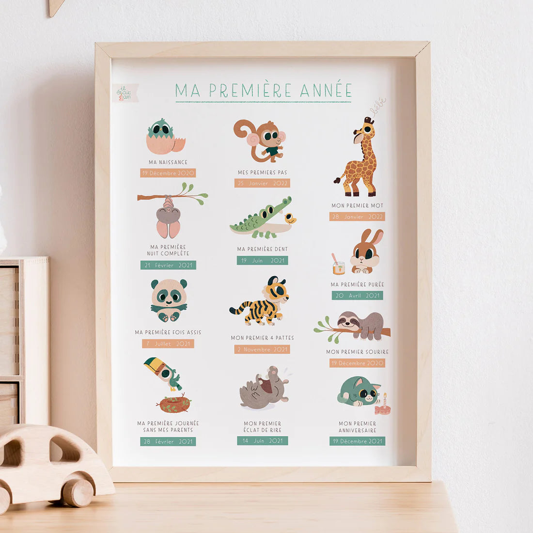 L'affiche à personnaliser "ma première année" vous permettra d'immortaliser chaque étape importante de votre bébé lors de sa première année.