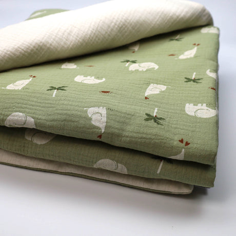 Grande couverture gaze de coton Fringe Stripe Sea Green Ivory 120x120cm