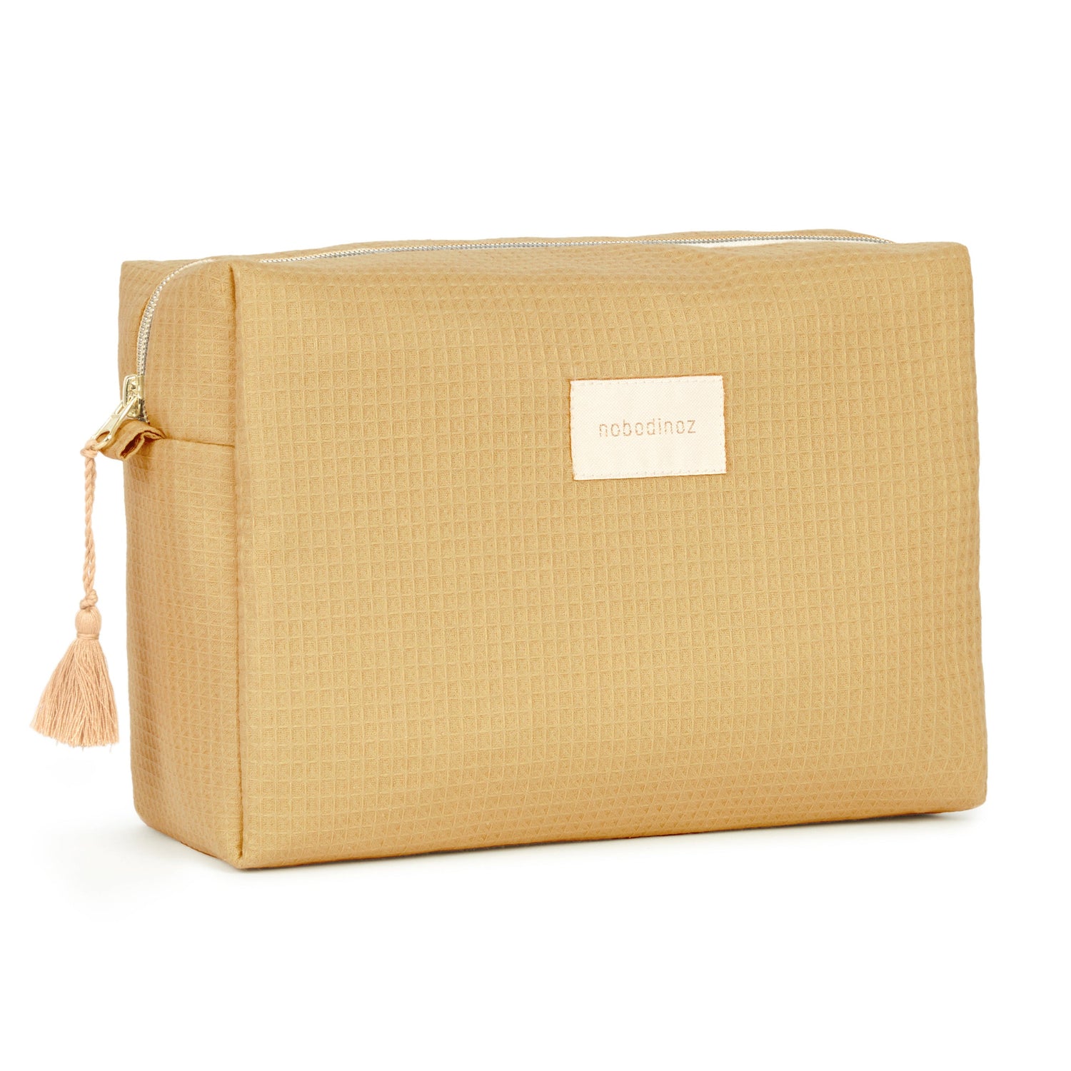 Large et pratique, la trousse de toilette Diva Camel de Nobodinoz s'habille de nid d’abeille et d'une doublure intérieure imperméable. Elle se ferme par une fermeture à glissière sur toute la longueur qui permet une grande ouverture.