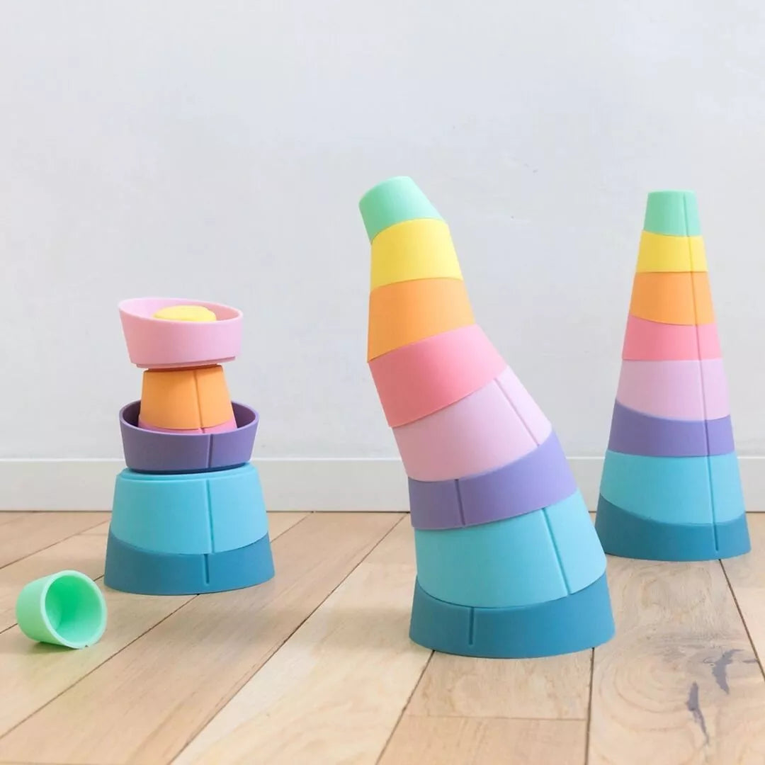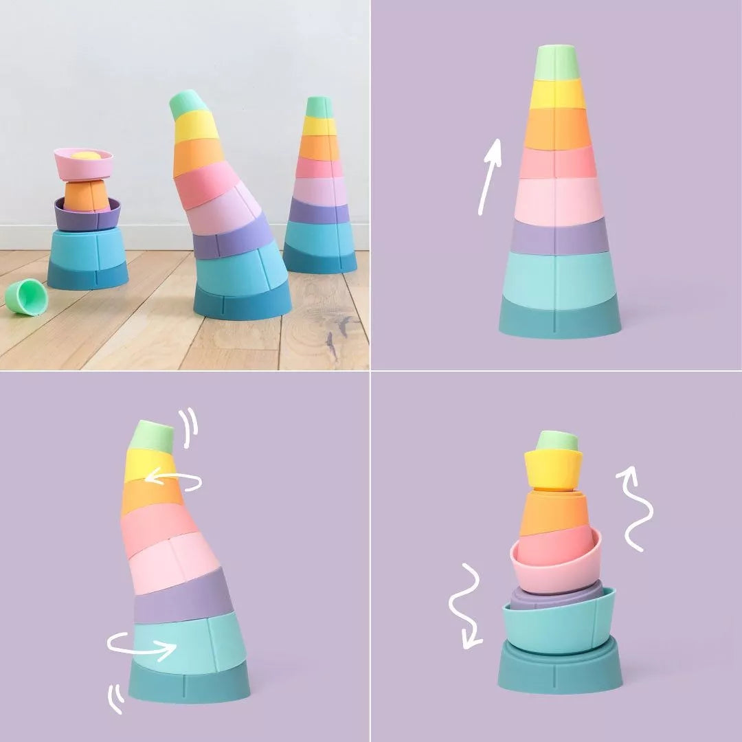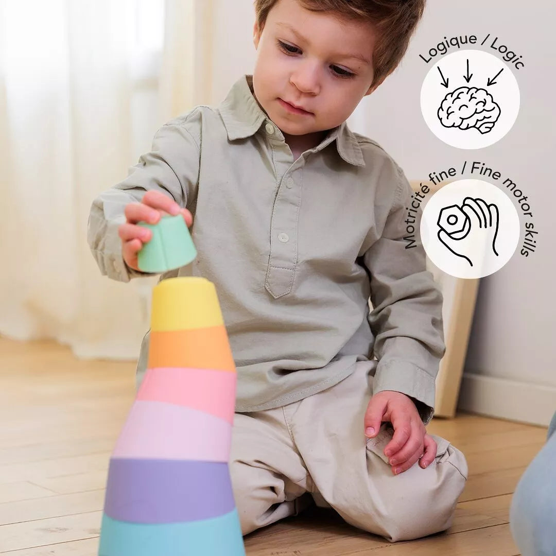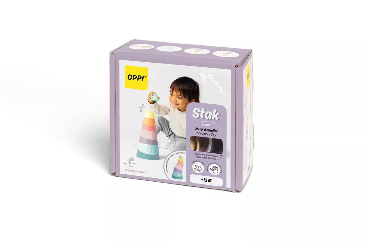 Stak est un jouet à empiler qui développe la motricité fine et la logique pour les enfants à partir de 12 mois.