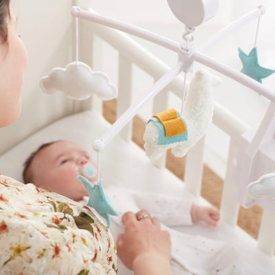 Le mobile lama bercera bébé avant de l'endormir. Il l'aidera également à s'éveiller lorsqu'il regardera les éléments en mouvement.