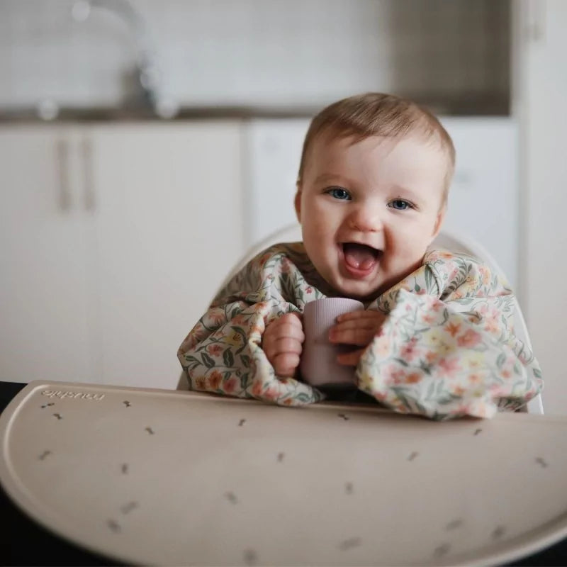 Gardez votre enfant propre et à l’aise avec le bavoir à manches longues Mushie, parfait pour les repas, les activités créatives et tous les moments salissants du quotidien.