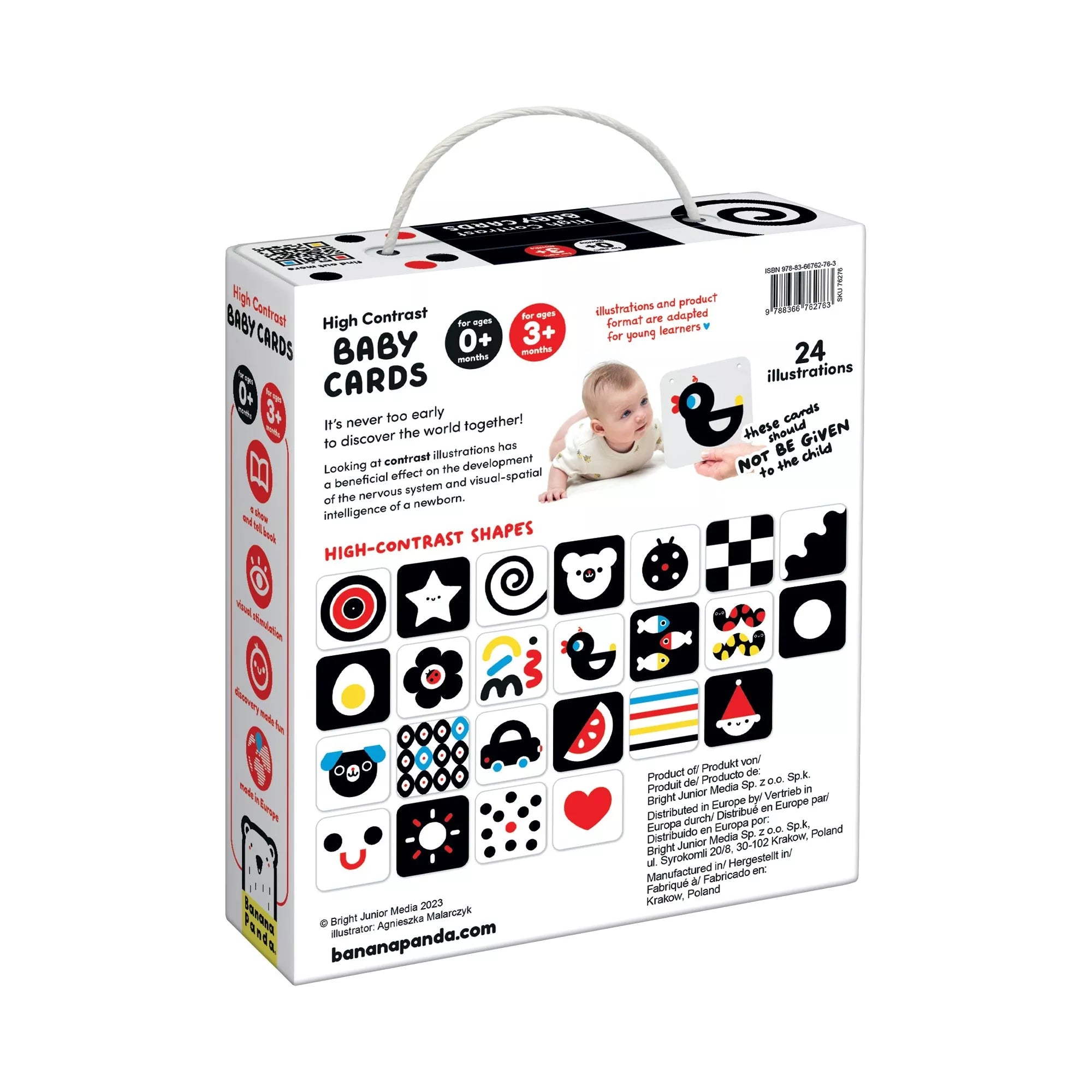 Ces flashcards recto-verso, dotées de grandes illustrations spécialement adaptées aux tout-petits, sont conçues pour répondre aux besoins visuels des nourrissons, qui perçoivent mieux les couleurs à fort contraste et les formes distinctes. Les motifs simples et évidents captivent l'attention de bébé tout en favorisant son développement visuel.